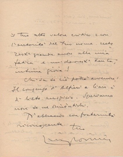Lettera autografa firmata datata 20 marzo 1939 - Milano, inviata ad un amico.