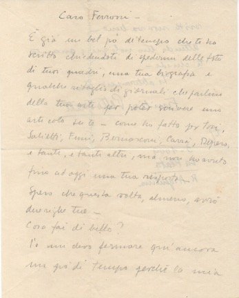 Lettera autografa firmata, non datata [ma 1929], inviata al pittore Guido Ferroni.