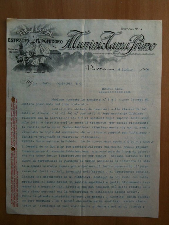 EXCELSIOR Estratto pomidoroA. TURRINI - TANZI PRIMOPARMA 6 LUGLIO 1914formato 22x28,5 cmin buone condizioni e1528