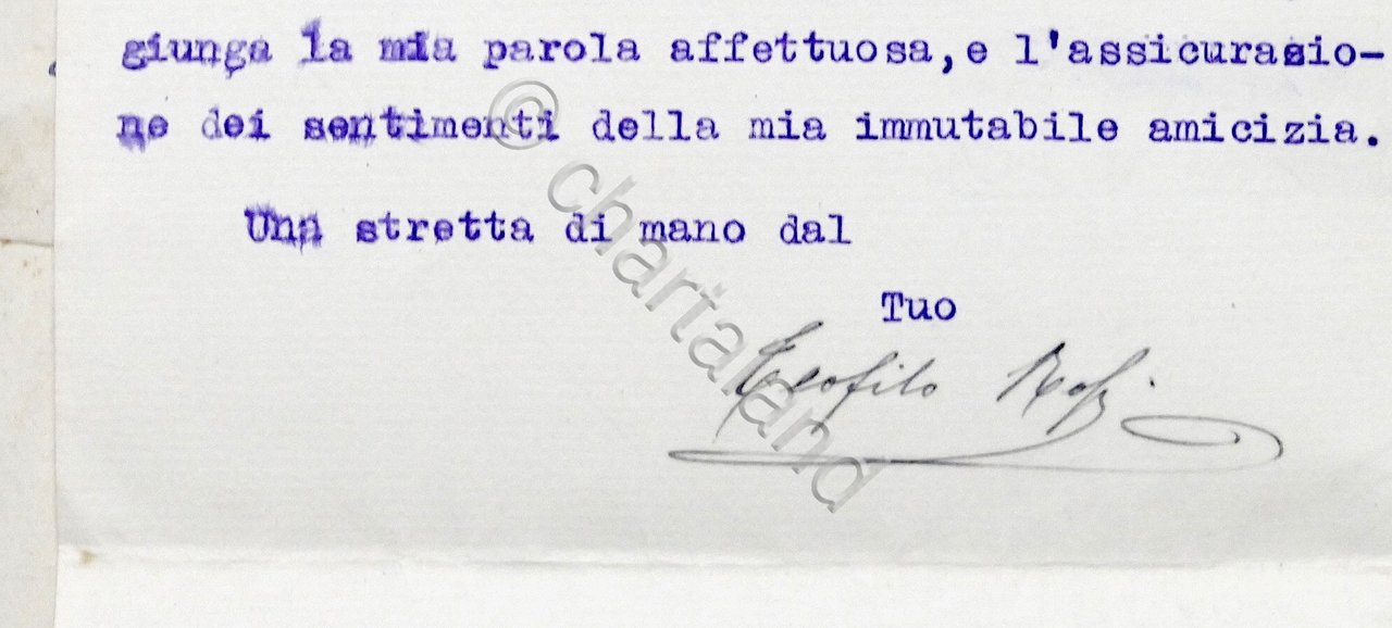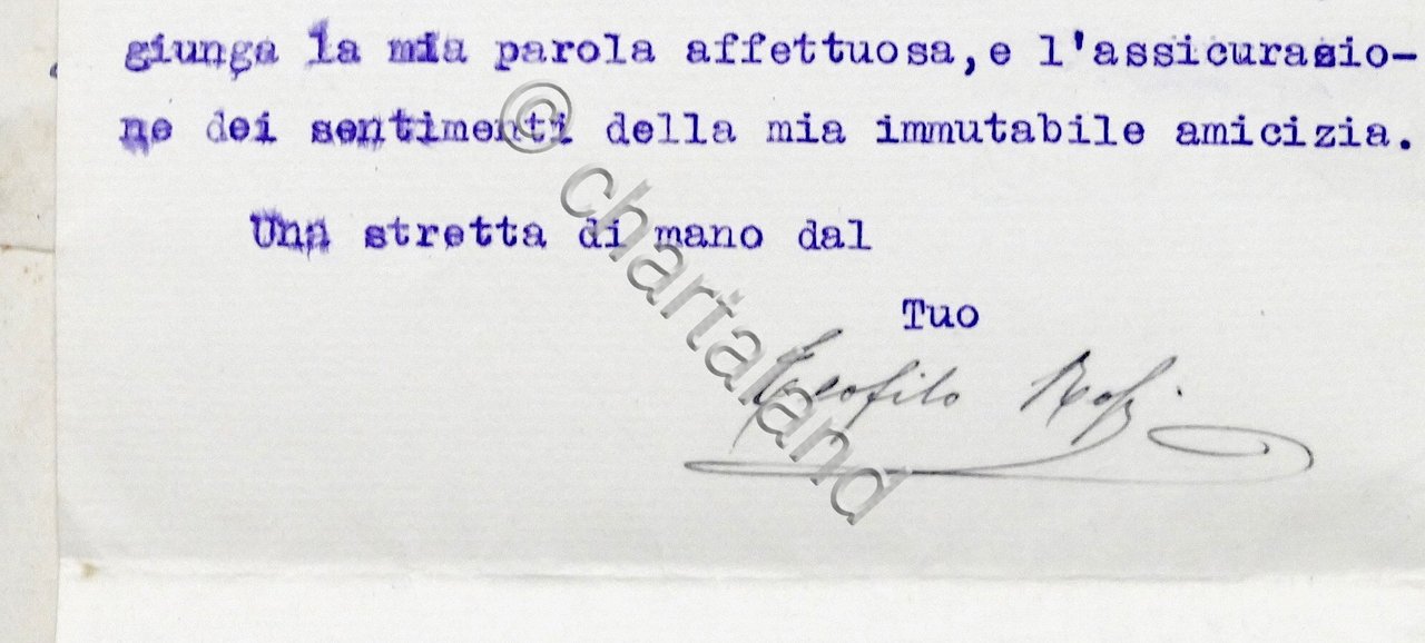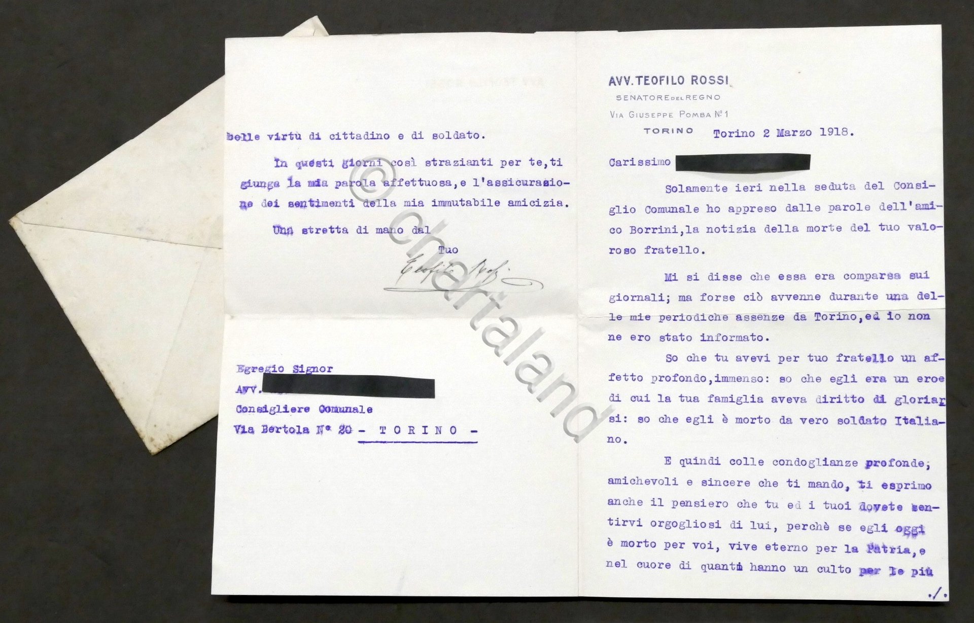 Lettera con autografo del senatore Teofilo Rossi di Montelera - 1918