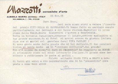 - 1 carta scritta al recto su carta intestata “Mazzotti ceramiche d’arte”.