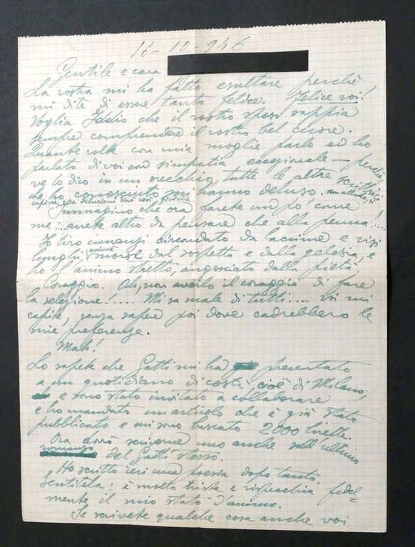 Lettera manoscritta autografo del poeta Garibaldo Alessandrini - 1946