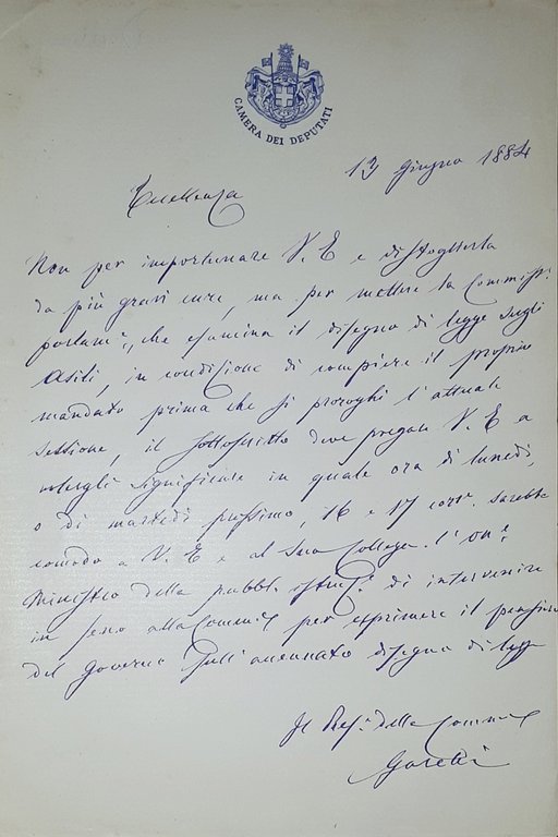 Lettera manoscritta con autografo - Felice Garelli - 1884