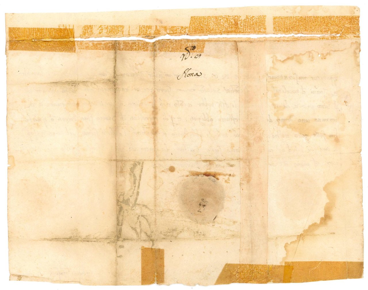 Mm. 295x230. Sigillo a secco con le armi estensi in calce. Firmato dal segretario di Ippolito d'Este, Tommaso Fusco, che fu anche uno dei suoi maestri. Tracce di piegature, mancanze varie ed aloni sparsi.