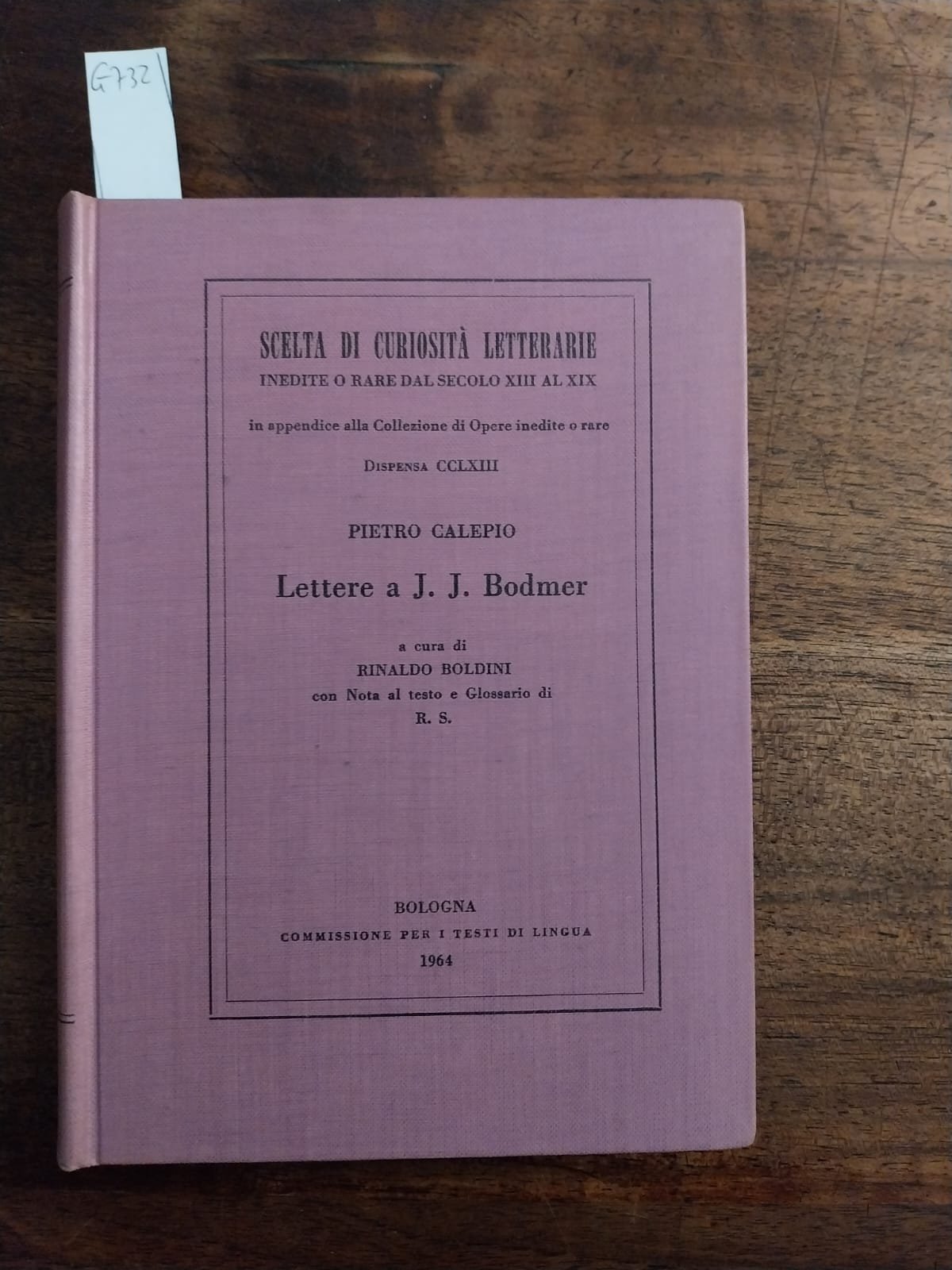 Lettere a J. J. Bodmer. A cura di Rinaldo Boldini. Scelta di curiosità letterarie inedite o rare dal sec. XIII al XIX.
