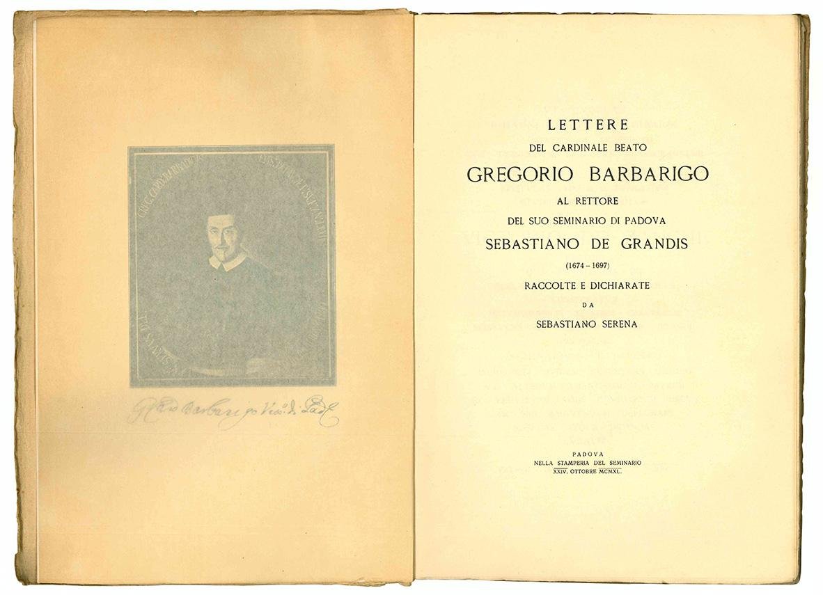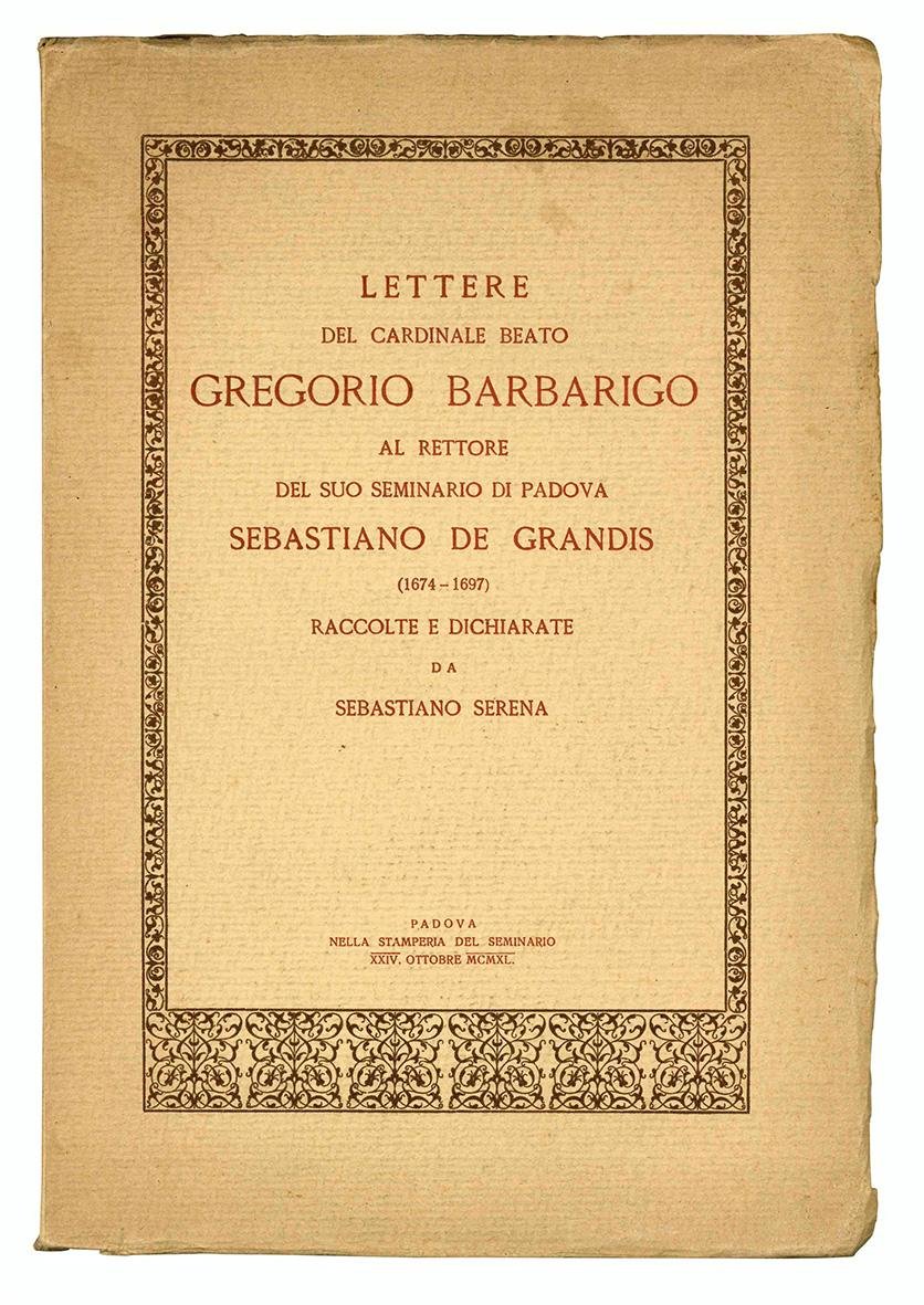 Lettere del cardinale beato Gregorio Barbarigo al rettore del suo seminario di Padova Sebastiano De Grandis (1674-1697). Raccolte e dichiarate da Sebastiano Serena.