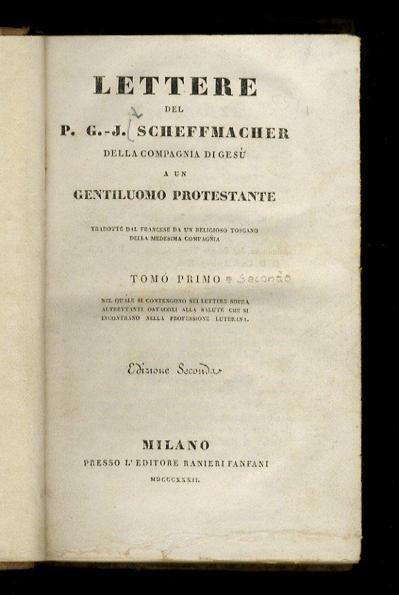 Lettere del p. G.-J. Scheffmacher della Compagnia di Gesù a un gentiluomo protestante [.] Edizione seconda. Tomo primo [- secondo].