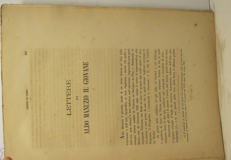 In 4, pp. 287-295 + (1b). Esemplare privo di legatura all'origine. Estratto dagli Atti e Memorie della Deputazione e Storia Patria Province Modenesi e Parmensi.
