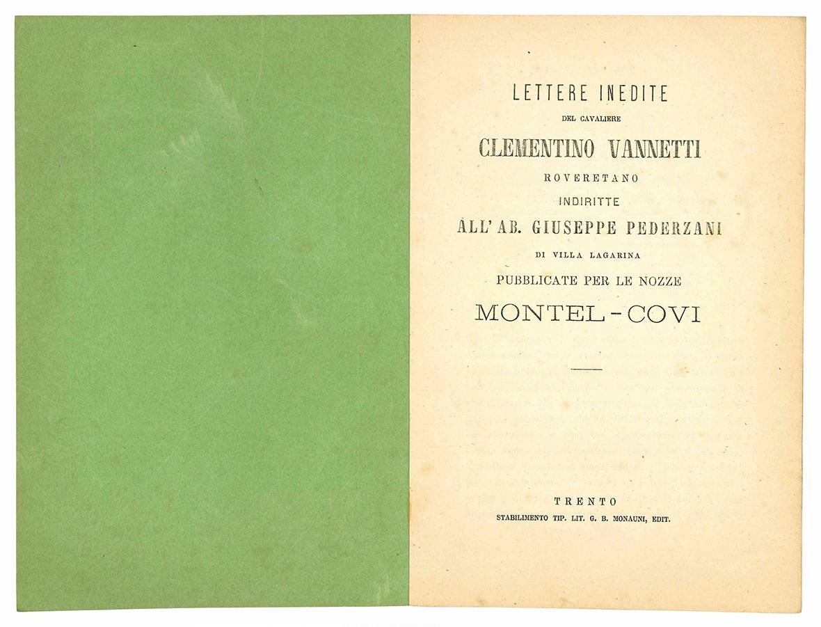 Lettere inedite del cavaliere Clementino Vannetti roveretano indiritte all'Ab. Giuseppe Pederzani di Villa Lagarina pubblicate per le nozze Montel - Covi.