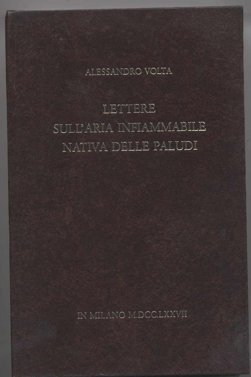 - Ristampa anastatica a cura della SNAM S.p.A. del Marzo 1987 - Il cofanetto contiene il volume "Lettere del signor Alessandro Volta sull'aria infiammabile nativa delle paludi" oltre all'opuscolo di Alessandro Volta al Padre Giuseppe campi