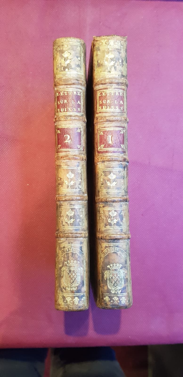 2 voll. in-8°, pp. VIII, 326, (2); 347, (1), 8 di catalogo delle pubblicazioni, bella legatura coeva in piena pelle bazzana, dorso a cinque nervi, titolo su tassello e fregi in oro, tagli marmorizzati. Prima traduzione francese di Ramond de Carbonnieres. Ottimo esemplare in bella legatura dell'epoca. Il testo tratta dal punto di vista storico e geografico i Cantoni della Svizzera. Perret 1159