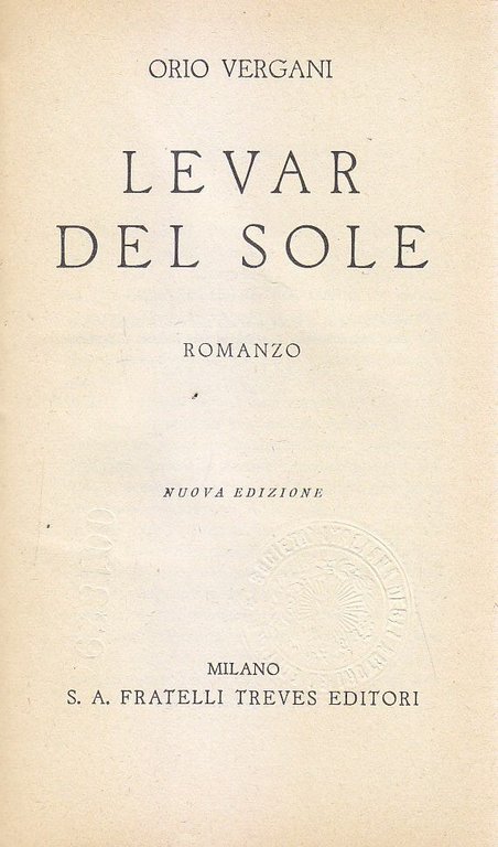 LEVAR DEL SOLE di Orio Vergani 1935 Fratelli Treves Editore libro romanzo