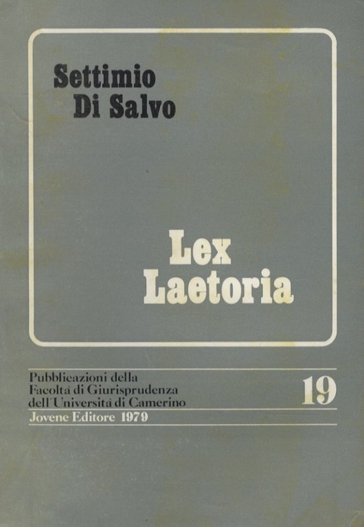 Napoli, Jovene, 1979, in-8, brossura editoriale, pp. XVI, 340. Qualche leggera traccia di umidità alla copertina anteriore ma internamente in ottimo stato. Dalla collana di pubblicazioni della facoltà di Giurisprudenza dell'Università di Camerino.