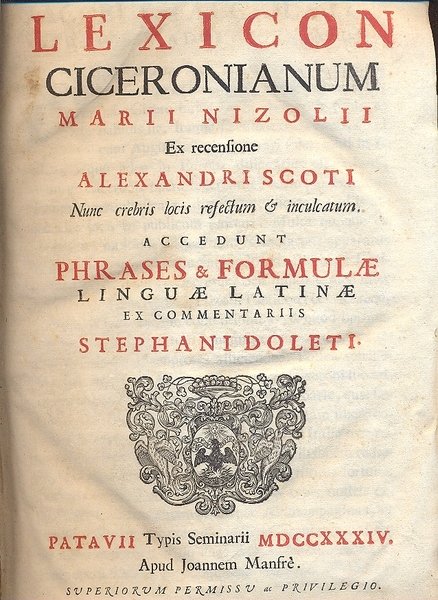 Lexicon Ciceronianum . Ex recensione Alexandri Scoti nun crebris locis refectum e inculcatum. Accedunt phrases e formulae linguae latinae ex commentariis Stephani Doleti.