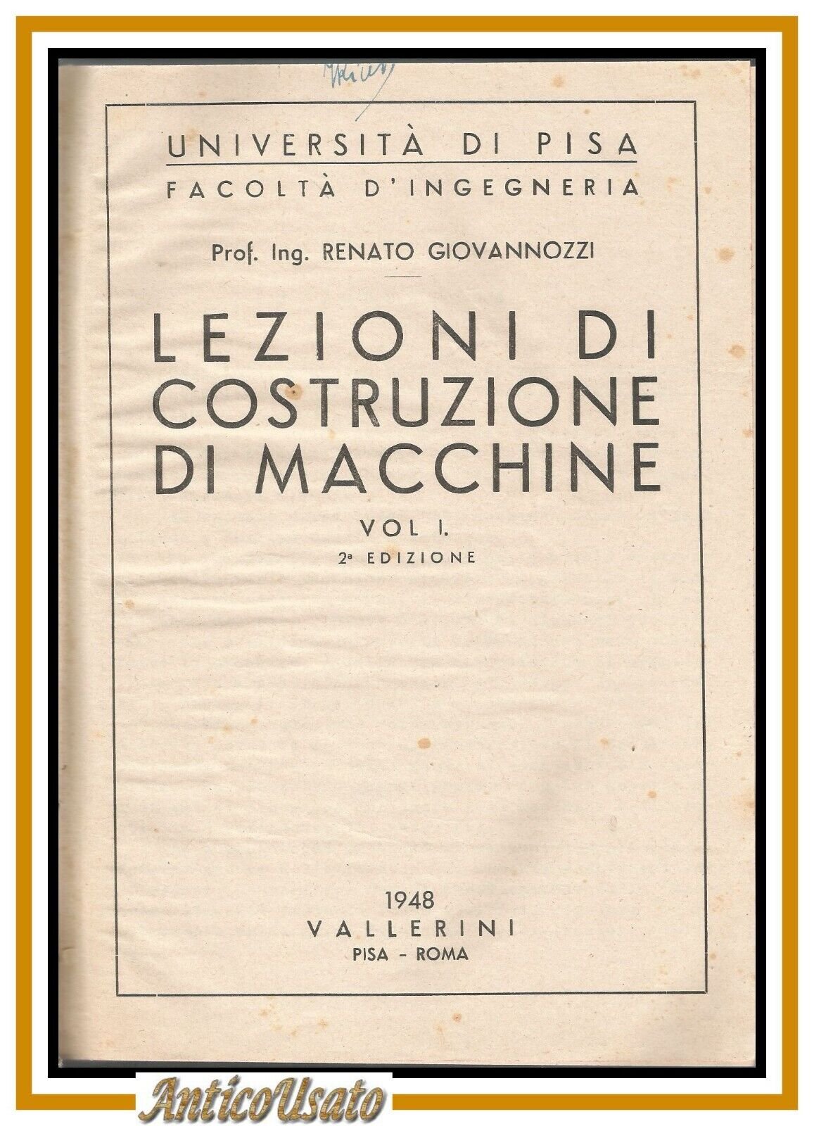 LEZIONI COSTRUZIONE DI MACCHINE 2 volumi Renato Giovannozzi 1948 Vallerini Libro
