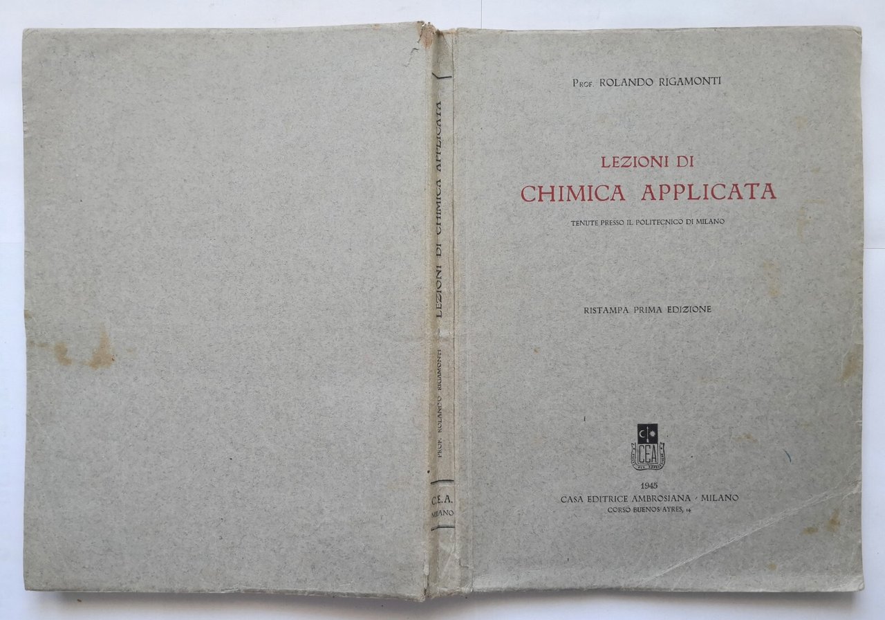 LEZIONI DI CHIMICA APPLICATA Rolando Rigamonti 1945 Ambrosiana Libro politecnico