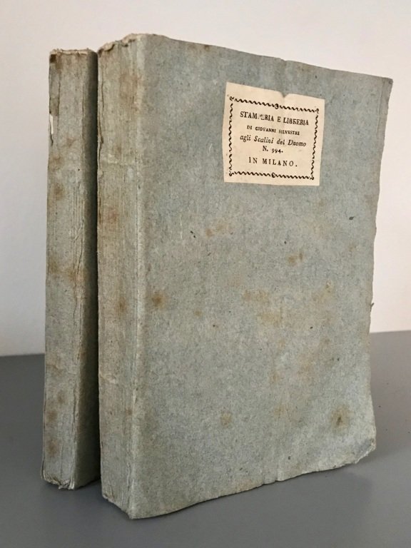 2 volumi in-8° (cm. 18,3), brossure azzurre coeve con etichetta libraria al piatto del primo volume; pp. 355, 260 in barbe e in buono stato, con una antica firma di appartenenza al contropiatto posteriore del secondo volume; leggera gora del tutto marginale al solo primo fascicolo del secondo volume, lievissime fioriture. Esemplare molto buono. (NK1)