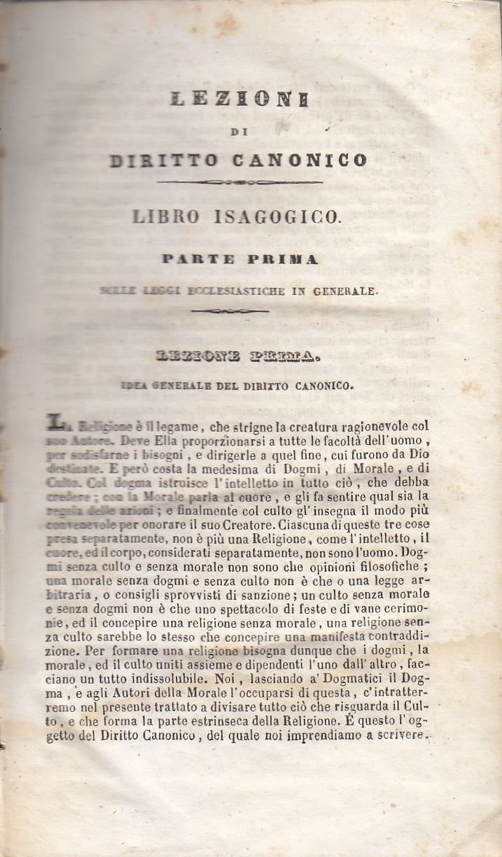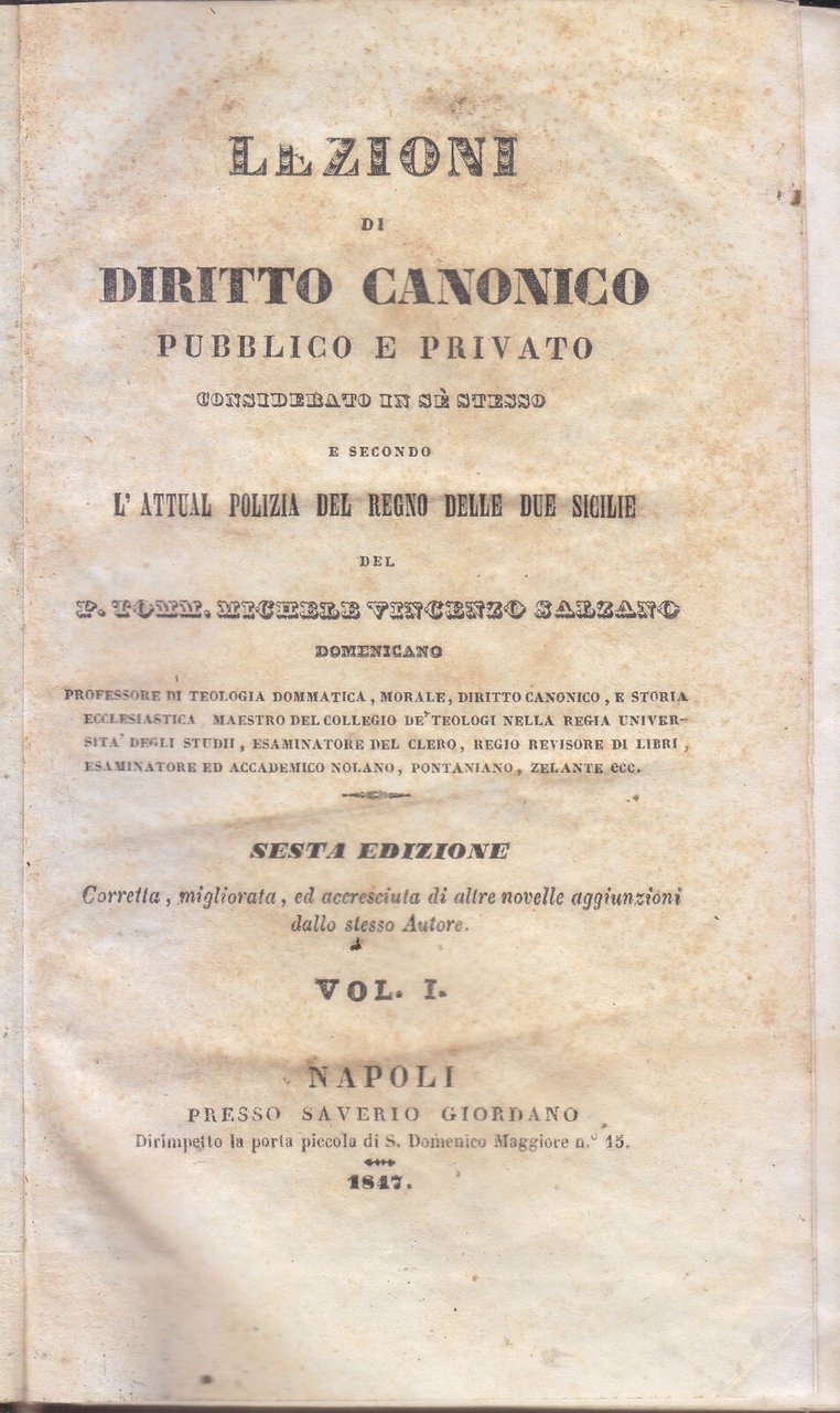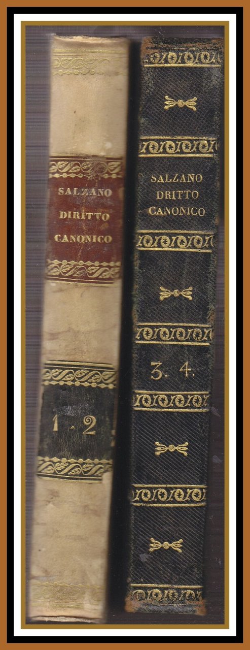 LEZIONI DI DIRITTO CANONICO PUBBLICO E PRIVATO di Vincenzo Salzano. 4 volumi rilegati in due tomi con legature differenti.