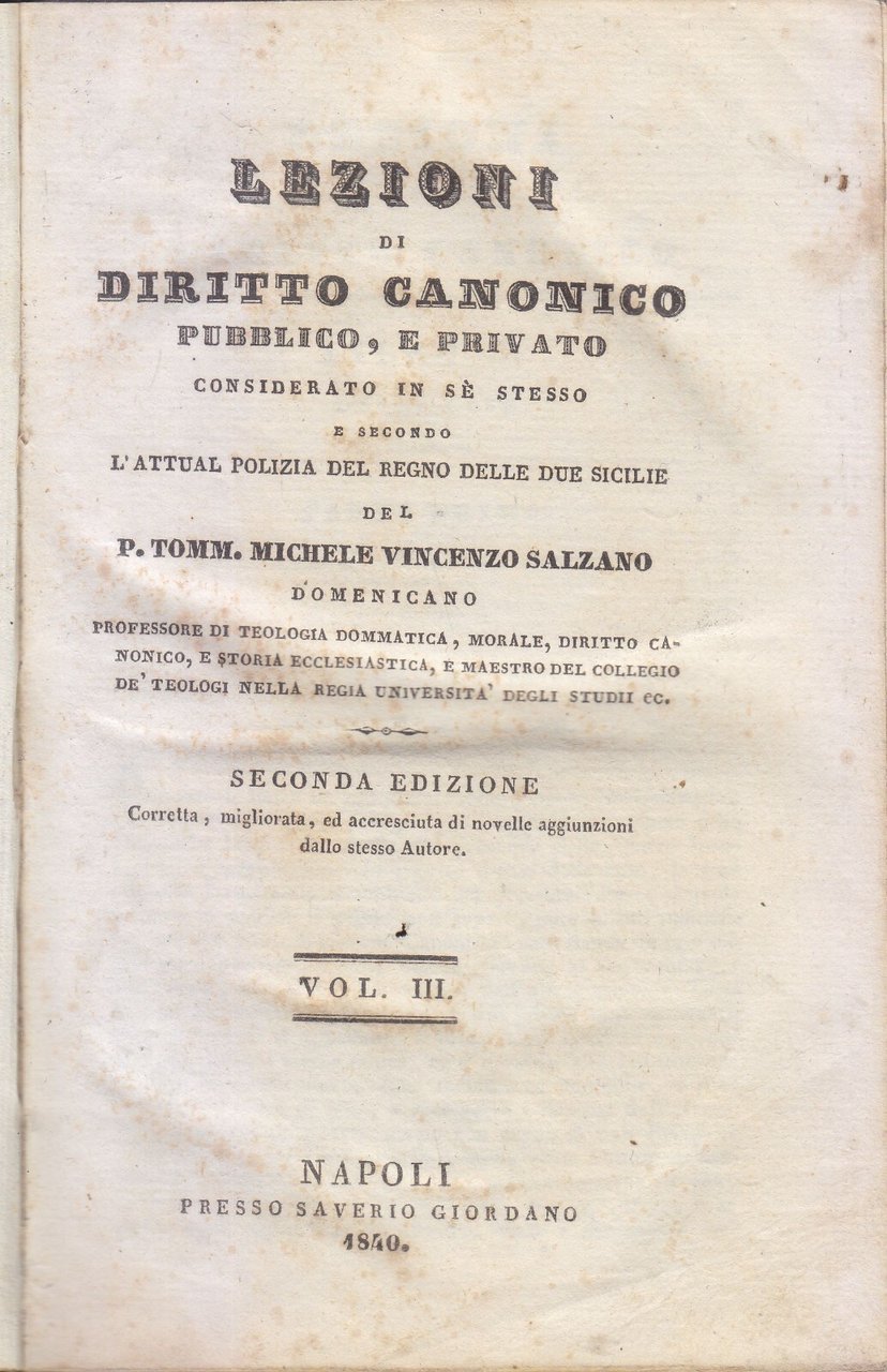 LEZIONI DI DIRITTO CANONICO PUBBLICO E PRIVATO Salzano 4 tomi in 2 volumi Libro