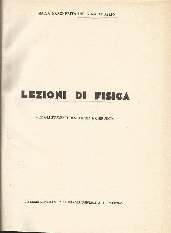 LEZIONI DI FISICA per gli studenti medicina Addario 1955 Denaro & Le Fauci Libro