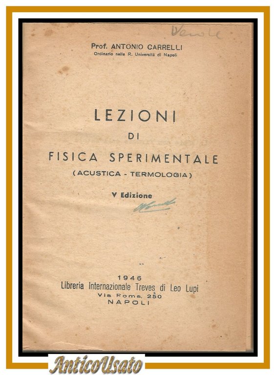 LEZIONI DI FISICA SPERIMENTALE Acustica Termologia di Antonio Carrelli libro