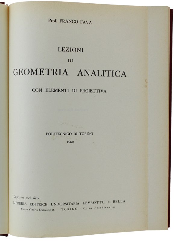 LEZIONI DI GEOMETRIA ANALITICA CON ELEMENTI DI PROIETTIVA. Politecnico di Torino 1960