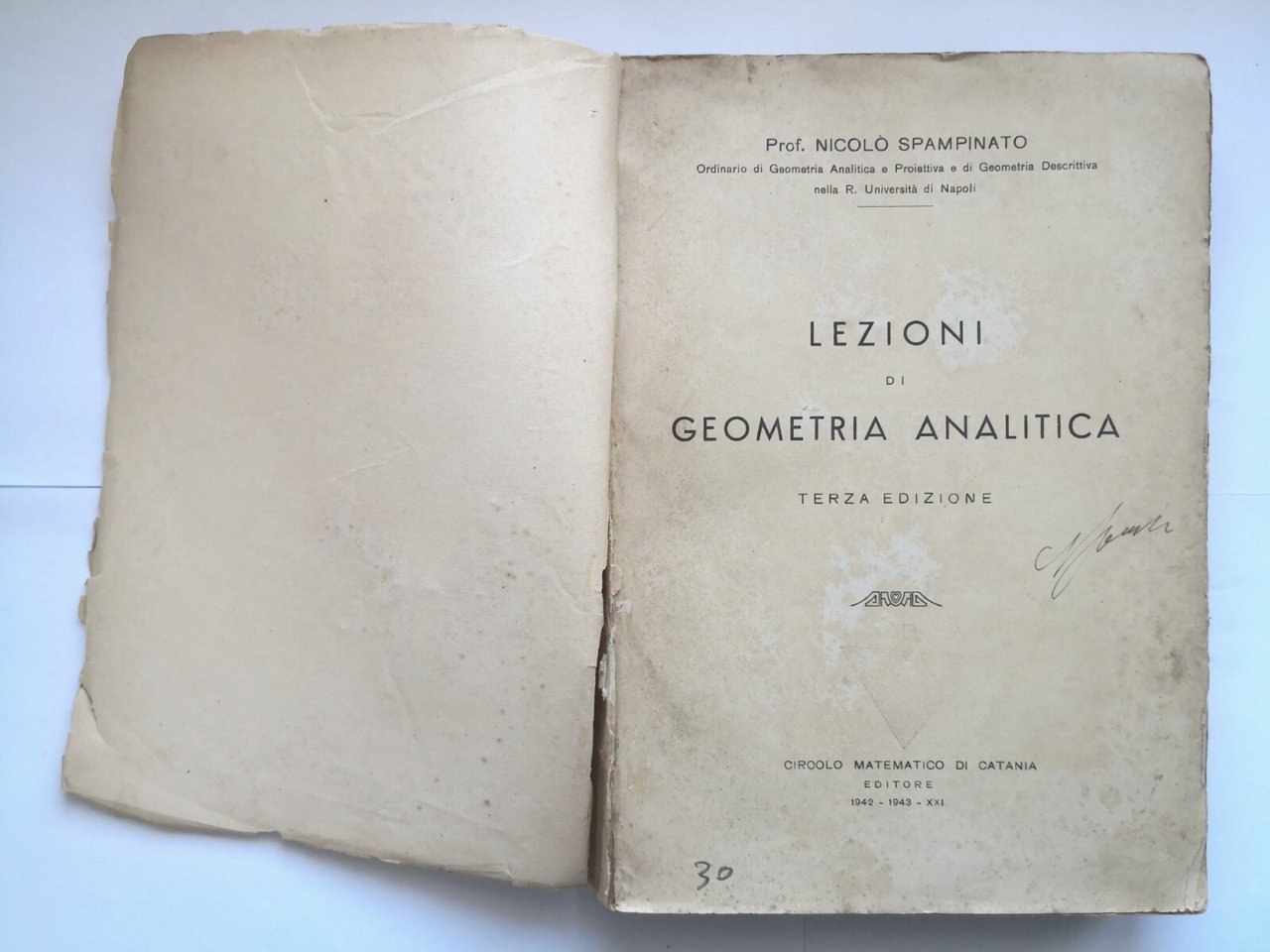 LEZIONI DI GEOMETRIA ANALITICA Nicolò Spampinato 1943 Circolo Matematico Libro