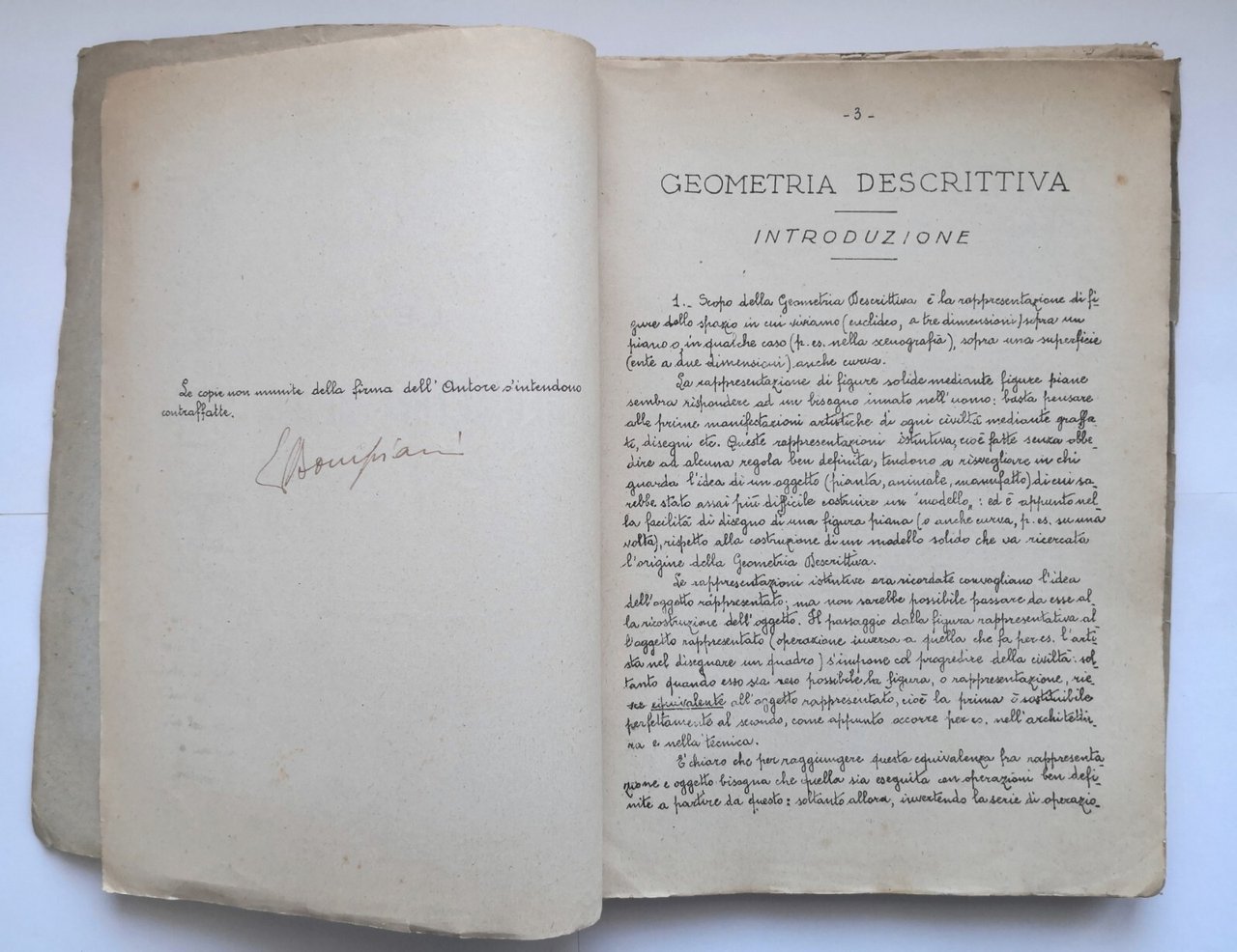 LEZIONI DI GEOMETRIA DESCRITTIVA Enrico Bompiani 1946 Romolo Pioda Libro
