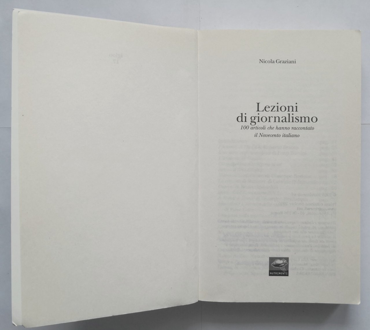 LEZIONI DI GIORNALISMO Nicola Graziani 2005 Nutrimenti Libro 100 articoli italia
