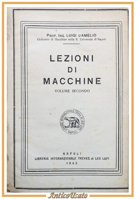 LEZIONI DI MACCHINE volume II di Luigi D'Amelio 1945 Treves Leo Lupi Libro 2
