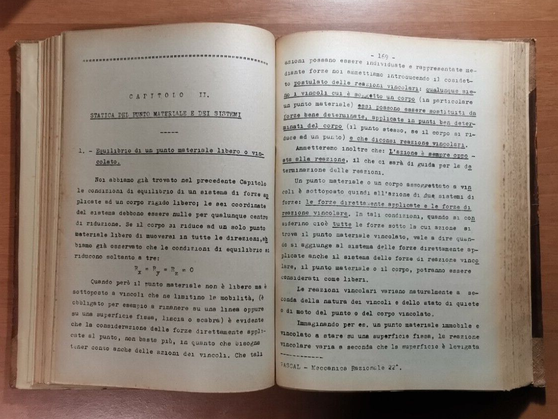 LEZIONI DI MECCANICA RAZIONALE Mario Pascal 1942 libro manuale statica grafica