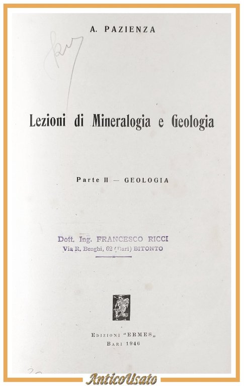LEZIONI DI MINERALOGIA E GEOLOGIA Parte II di Pazienza 1946 Ermes Libro manuale