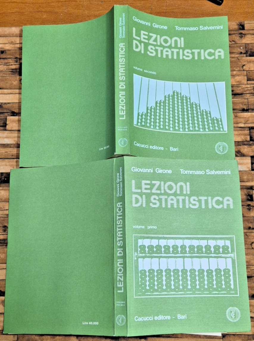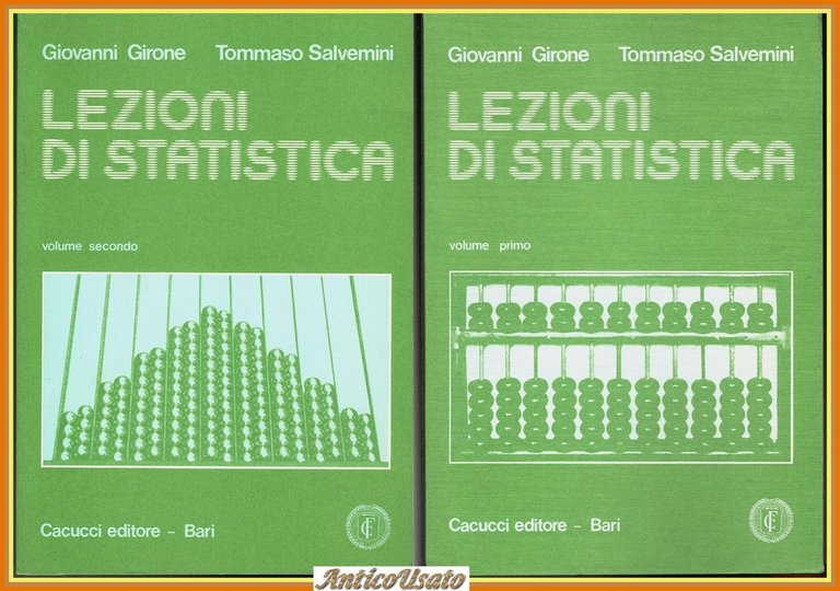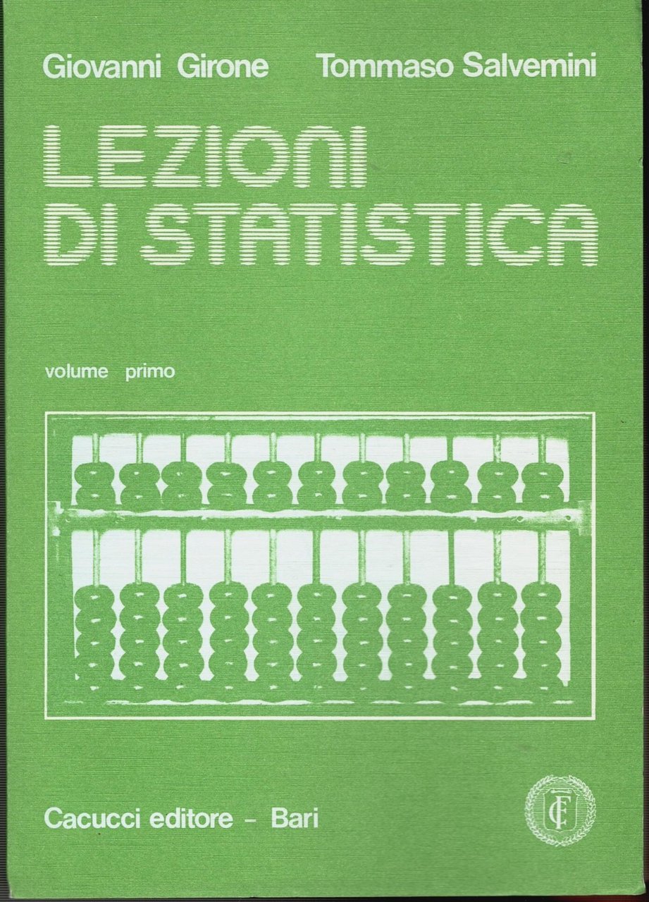 LEZIONI DI STATISTICA Volume primo e secondo di Giovanni Girone e Tommaso Salvemini.Cacucci Editore, 1993 1994. 303 + 353 pagine, figure in bianco e nero nel testo. Copertine editoriali in brossura. Stato di conservazione: OTTIMOLibro usato saggistica