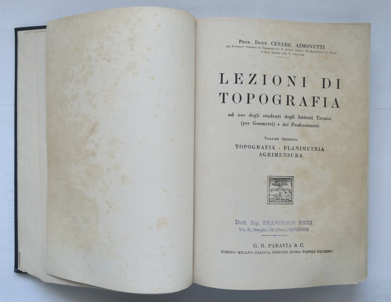 LEZIONI DI TOPOGRAFIA di Cesare Aimonetti 3 volumi in 1 Paravia 1949 1940 libro