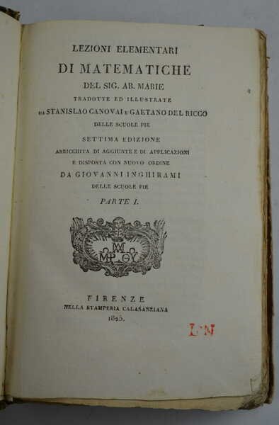 Lezioni elementari di matematiche del sig. ab. Marie tradotte ed illustrate da Stanislao Canovai e Gaetano Del-Ricco... Settima edizione arricchita di aggiunte e di applicazioni e disposta in nuovo ordine da Giovanni Inghirami…