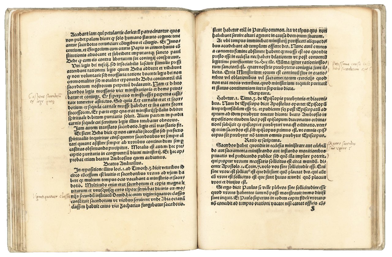 First edition of this pamphlet attacking Luther's position on the marriage of priests and other reforms proposed by him and his followers. In particular, Arnoldi, who went from being one of Luther's teachers in Erfurt to becoming one of his fiercest opponents, responds to a book on the celibacy of the clergy by the Lutheran theologian Johannes Lang (1487-1548).