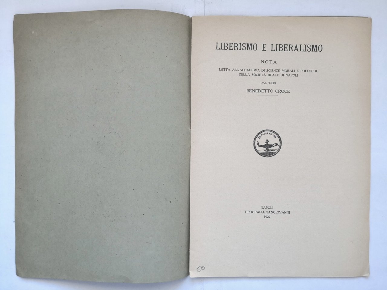 LIBERISMO E LIBERALISMO di Benedetto Croce 1927 Libro nota letta accademia Napol