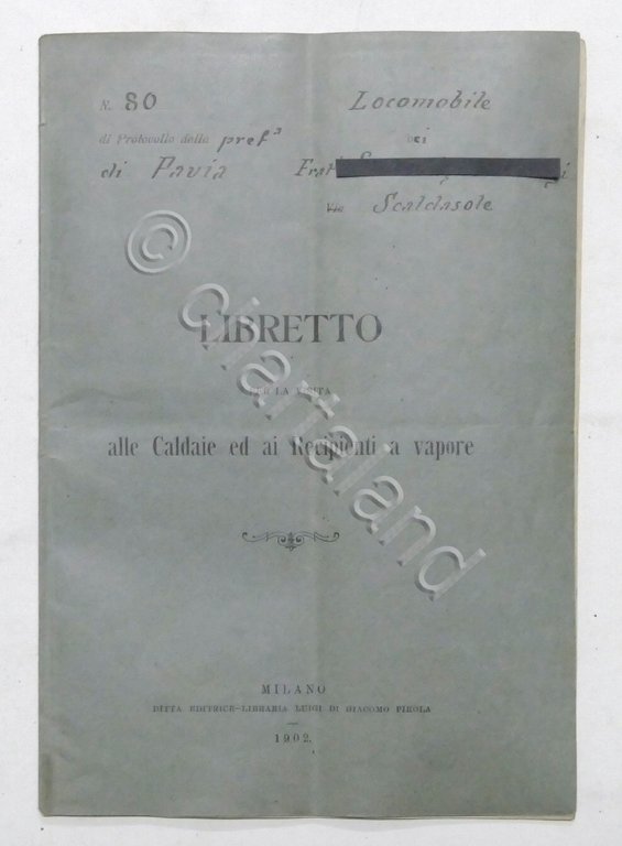 Libretto per la visita alle Caldaie ed ai Recipienti a vapore: Locomobile - 1902