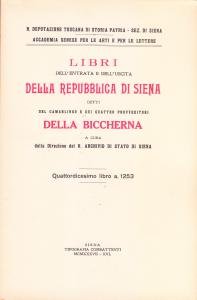 Libri dell'entrata e dell'uscita della Repubblica di Siena detti del Camarlingo e dei Quattro Provveditori della Biccherna. Quattordicesimo libro a. 1253
