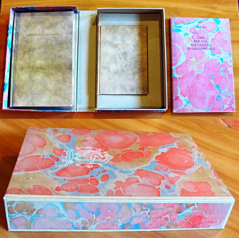 Ricchissimo di illustrazioni a colori n.t., anche a piena pagina, e f.t. Ed. Biblioteca Trivulziana - Milano, 198. Bella scatola cartonata, con Stemma in argento al piatto, contenitrice dei tre libri che compongono l'opera: Il saggio e la traduzione dei due Codici; La Grammatica e il Liber Iesus entrambi in splendida ristampa anastatica. 25,5x30,5; pp.88. COME NUOVO , Perfetto (Mint)