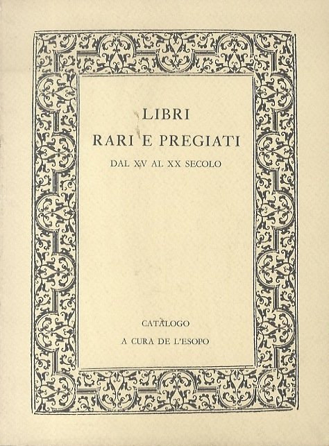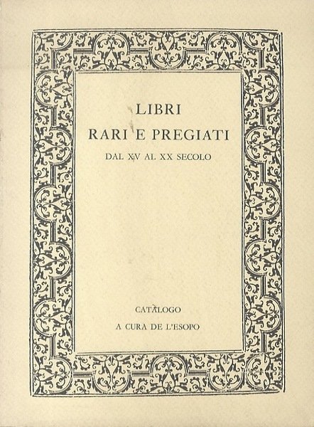 Libri rari e pregiati dal XV al XX secolo: Catalogo.
