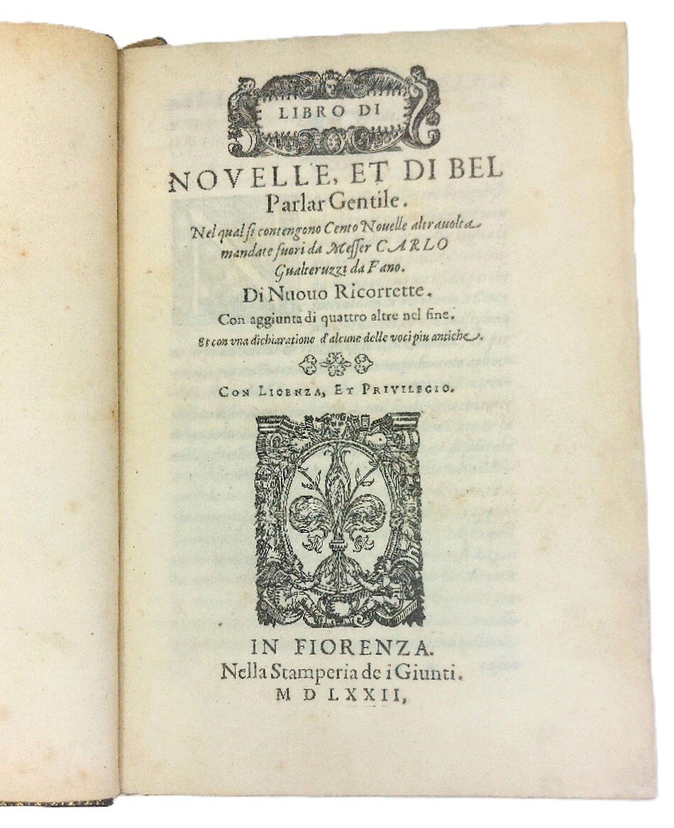 Libro di Novelle, et di bel Parlar Gentile. Nel qual si contengono Cento Novelle altravolta mandate fuori da Messer Carlo Gualteruzzi da Fano. Di nuovo ricorrette. Con aggiunta di quattro altre nel fine...