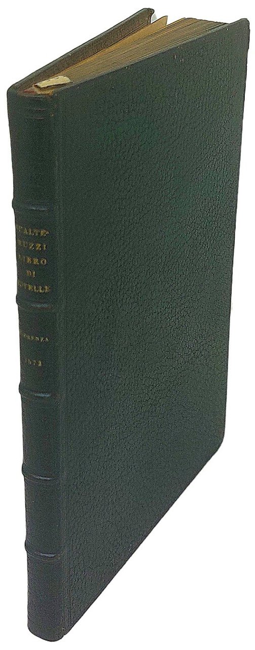 >in-4 (215x145 mm), pp. 28 nn. (le ultime 2 bb.), 165 num. (per errore num. 153: ripetute le p. 79-88 e 117-118), (3). Legatura 800esca d'amatore in p. marocchino verde scuro, dorso a nervi con titolo oro, dentelle interna, tagli dorati. Impresa tipografica al frontespizio, altra grande in fine, grandi iniziali istoriate e ornate e fregi in xilogr., car. corsivo nelle pag. preliminari, romano per il testo. Dedica di Filippo e Iacopo Giunta "Alli studiosi della Lingua Toscana". Dedica dell'autore al vescovo di Fano e Bologna Goro Gherio. Ottima edizione delle ''Cento Novelle Antiche'', più note col titolo di ''Novellino'', la cui editio princeps (Bologna 1525) è rarissima; la presente segue la lezione ''tratta da Vinc. Borghini da alcuni codici recanti l'aureo testo del sec. XIII...e per tutto il Settecento e l'Ottocento gli è stata preferita'' (Camerini). Il confronto con il Novellino del 1525 ha evidenziato che in realtà 81 Novelle su 100 sono le medesime, con qualche minima correzione formale, 19 sono invece diverse e presenti solo in questa edizione. Vi sono poi le quattro novelle aggiunte in fine da Borghini: le prime tre furono aggiunte al Decamerone che il Giunta stampò nel 1516, la quarta è di Lionardo d'Arezzo. Ottimo esemplare, ex-libris Mexborough alla controsguardia anteriore, note ms. al lapis all'occhietto (frontespizio un po' polveroso). Manca al BMC. Decia-Delfiol-Camerini II, 16. Gamba n. 687. Gamba, Novelle, p. 5-6. Papanti II, p. 16. Bacchi della Lega, Bibl. Boccaccesca, pp. 34-5. Adams G-1358.