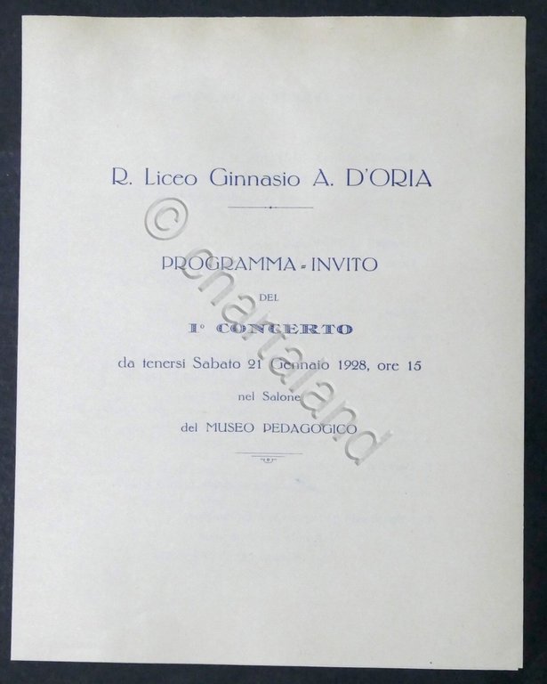 Liceo Ginnasio A. D'Oria - Genova - Programma invito del I° Concerto - 1928