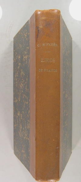 Marpon Flammarion, S.d. vers 1900, in/8 relié, 278 pages. Reliure en demi-basane marron. Avec dix musiques de Alfred Bruneau et dix dessins de Raphaël Menès. Abraham Catulle Mendès, né à Bordeaux le 21 mai 1841 et mort à Saint-Germain-en-Laye le 8 février 1909, écrivain et poète français.