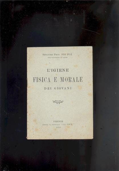 IN 16°, pp.39, COPERTINA EDITORIALE CON TITOLO.<BR>CICLO DI CONFERENZE DEL PROF. FOA', SULL'IGIENE FISICA E MORALE DEI GIOVANI.<BR>OPUSCOLO EDITO A CURA DEL GIORNALE LA VOCE. LA DIFFUSIONE, E' AFFIDATA ESCLUSIVAMENTE ALLA CASA EDITRICE ITALIANA DI A. QUATTRINI, FIRENZE.<BR>OTTIMA CONSERVAZIONE. ID 1644