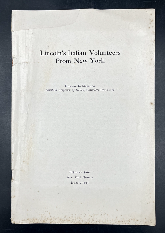 LINCOLN's ITALIAN VOLUNTEERS from NEW YORK [Legione Italiana "to defend the Union against the slave States of the South"]. Reprinted from New York History , January 1943. [Estr. orig. da: New York history, 1943].
