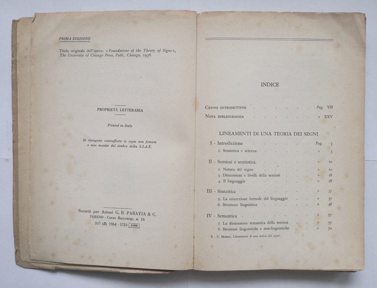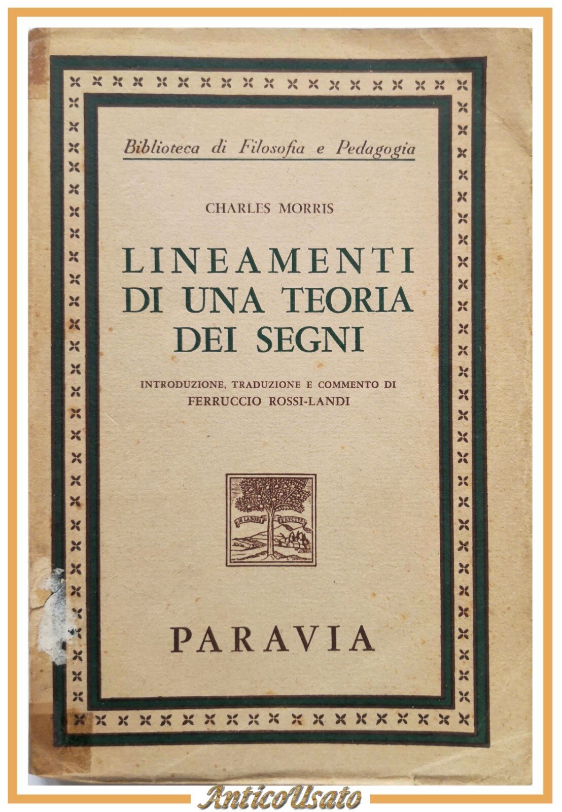 LINEAMENTI DI UNA TEORIA DEI SEGNI di Charles Morris 1954 Paravia Libro filosofi | Libri antichi e moderni |
