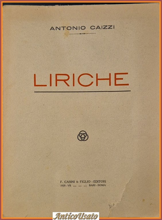 LIRICHE di Antonio Caizzi 1929 Casini editore Libro poesia