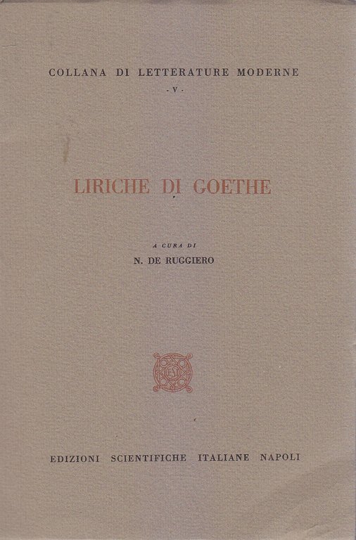 LIRICHE di Goethe a cura N De Ruggiero 1958 Edizioni Scientifiche Italiane LIBRO